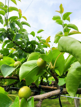 現在、梨の実は日に日に大きくなり、摘果作業の真っただ中です。